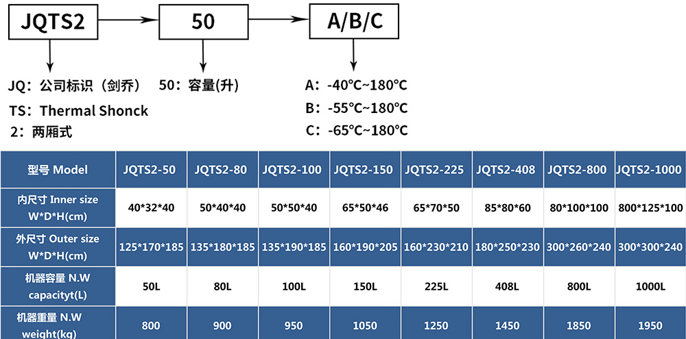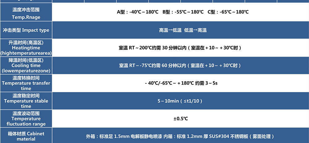 • 兩廂式冷熱沖擊試驗(yàn)箱型號命名及參數(shù)表