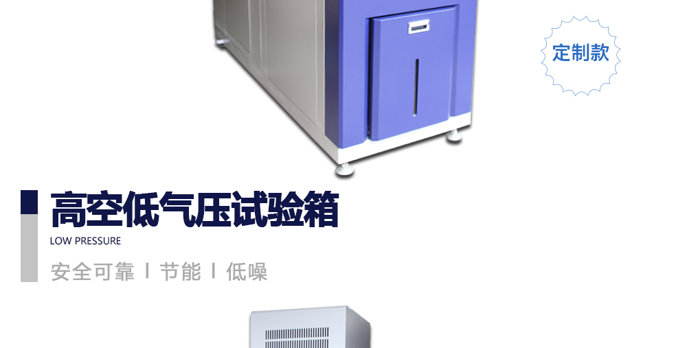 用途:高空低氣壓試驗箱主要用于試驗工件在低氣壓、高溫低溫、凝露、結霜單項或同時作用下的環境適應性與可靠性試驗,并或同時對試件通電進行電氣性能參數的測量。高空低氣壓試驗箱