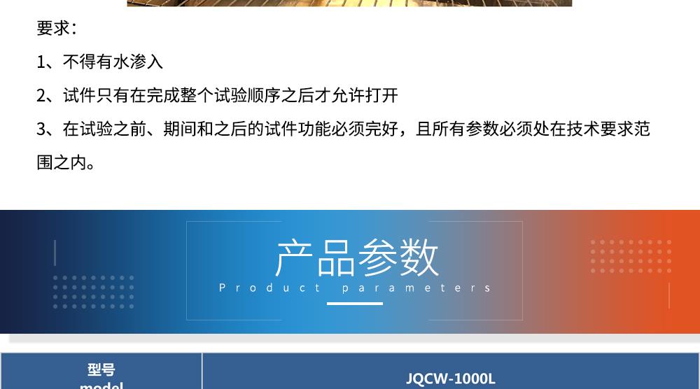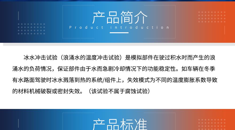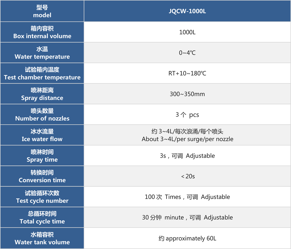 產(chǎn)品型號:JQCW-1000L 品牌:劍 喬 用途:冰水沖擊試驗(浪涌水的溫度沖擊試驗)是模擬部件在駛過積水時而產(chǎn)生的浪涌水的負(fù)荷情況,保證部件由于水而急劇冷卻情況下的功能穩(wěn)定性。如車輛在冬季有水路面駕駛時冰水濺落到熱的系統(tǒng)/組件上,失效模式為不同的溫度膨脹系數(shù)導(dǎo)致的材料機械破裂或密封失效咨詢熱線:13829135130
