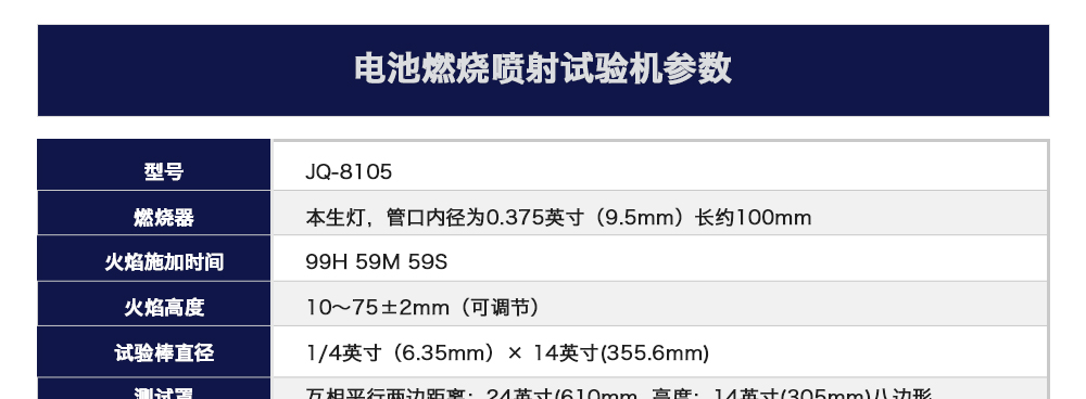 用途:燃燒噴射試驗機用于汽車用途動力鋰原電池和其它原電池、以及鋰離子電池、鎳氫、鎳鎘以及磷酸鐵鋰電池或者動力鋰電池模塊的外殼材料顆粒燃燒或電池