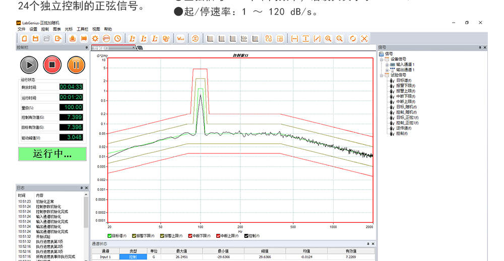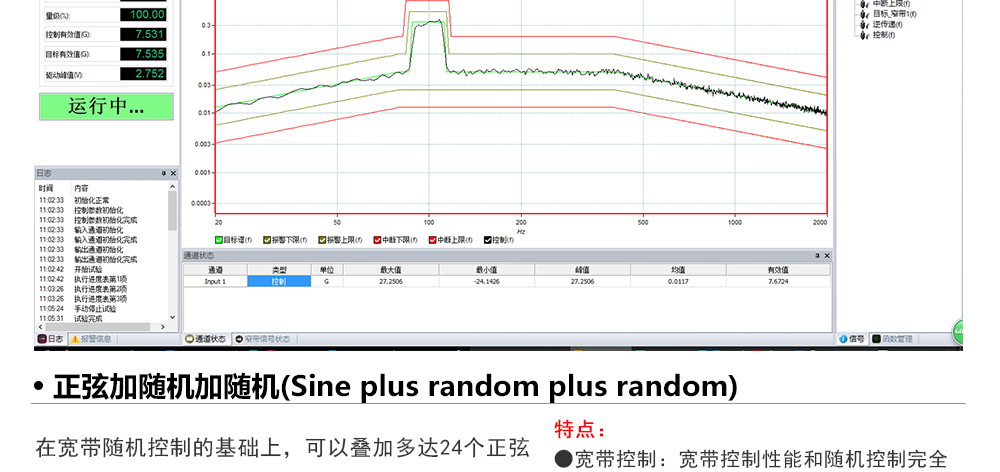產(chǎn)品型號: JQ-10002 品牌:劍 喬 用途:正弦試驗可以控制振動臺實現(xiàn)定頻(駐留)、掃頻等振動試驗。控制算法中采用了跟蹤濾波的幅值以及相位檢測算法,可以實現(xiàn)對控制信號的準確反饋以及實時的閉環(huán)控制。咨詢熱線:13829135130
